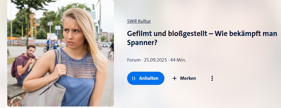 Voyeur-Aufnahmen im Park, Videos aus Kaufhaus-Umkleiden oder vom Ex-Freund hochgeladene Privatbilder im Internet – viele Frauen erleben diese Formen sexualisierter Gewalt alltäglich. Als Opfer fühlen sich die meisten allein gelassen; die Täter kommen sehr oft davon oder machen sich nicht strafbar. Helfen neue Gesetze gegen Spanner, Online-Bloßstellung und verbale Belästigung wie das sogenannte Cat-Calling? Wie sicher ist der öffentliche Raum für Frauen? Was treibt die Männer zu ihren Taten? Lukas Meyer-Blankenburg diskutiert mit Anna-Lena von Hodenberg – Journalistin, Gründerin von "Hate Aid"; Jonas Kneer – Psychologe bei „I CAN CHANGE“, Hannover; Jacqueline Sittig – Juristin, Uni Würzburg